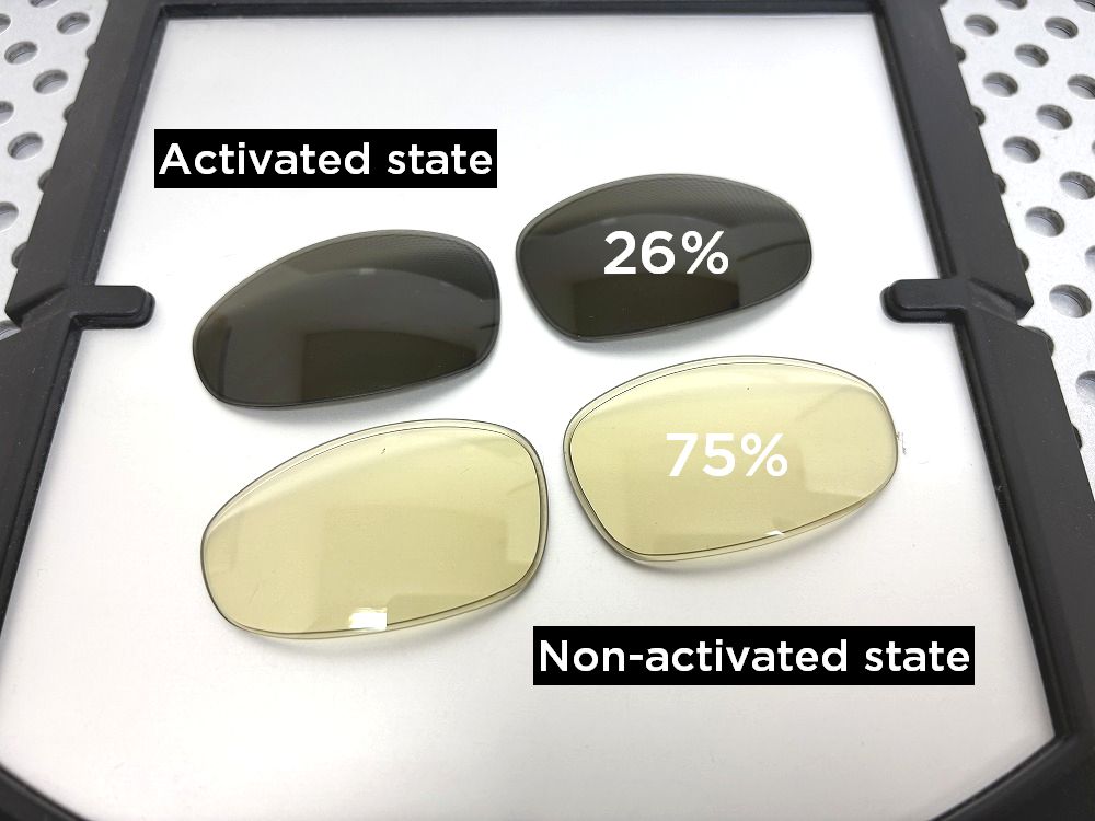 The lens does not simply switch between two fixed states; instead, it smoothly adjusts its light transmission between 26% and 75%, depending on the surrounding light conditions.