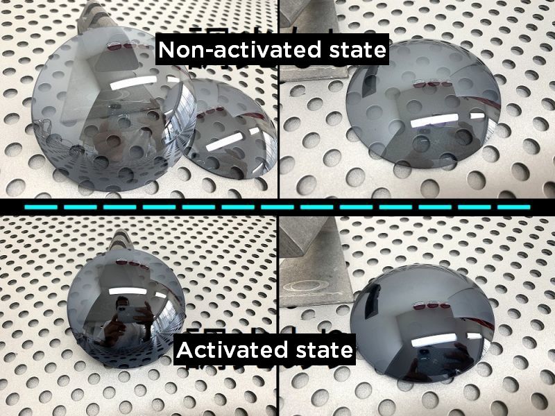 And the color will change to darker like Oakley Black Iridium when you in a place under strong sunlight.(Light transmission will change to10%)