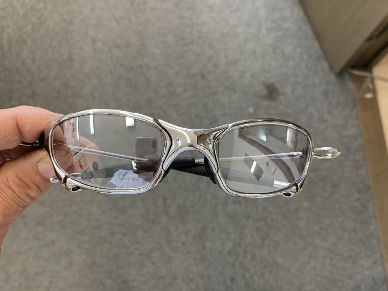 At the time color in Clear base lens with silver mirror, it looks similar to Oakley's Titanium Clear.