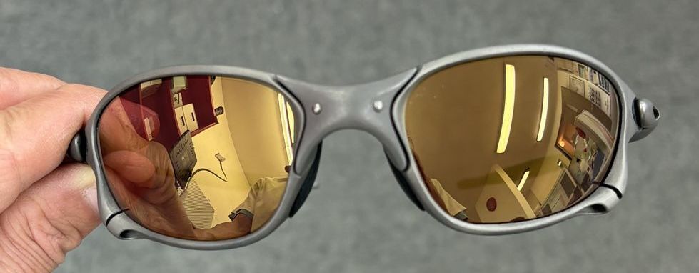 When activated by sunlight, the lens darkens and transitions into a deeper, richer gold color.