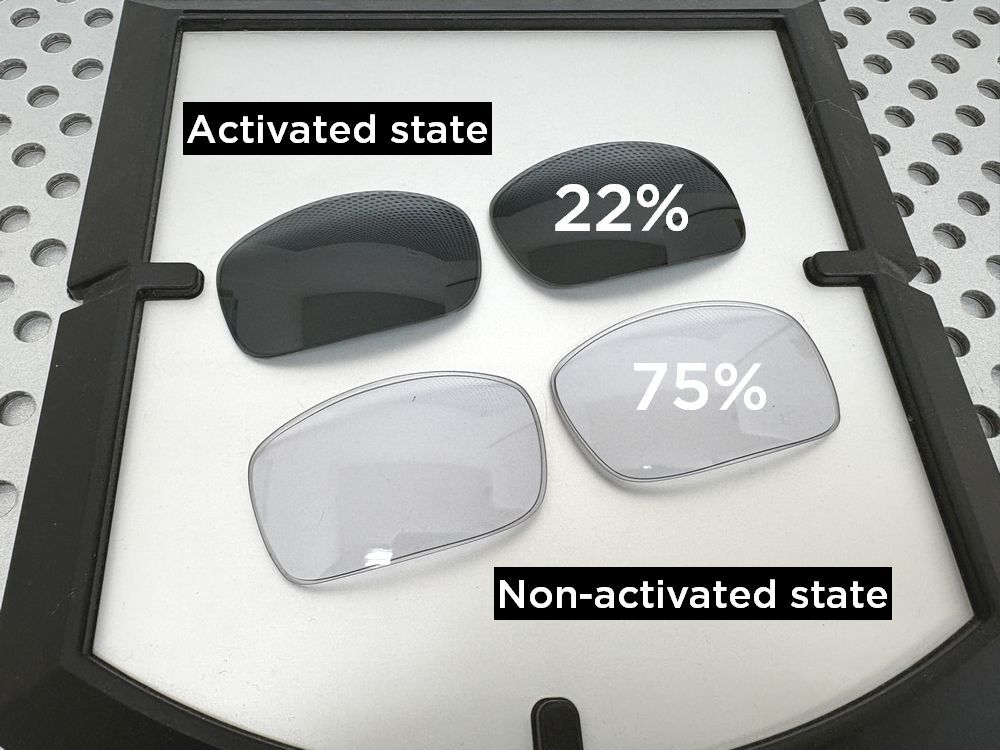 The lens does not simply switch between two fixed states; instead, it smoothly adjusts its light transmission between 22% and 75%, depending on the surrounding light conditions.