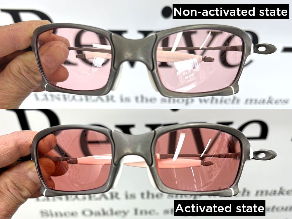When the photochromic function is not activated, the base lens color remains light, providing a bright and clear field of view.