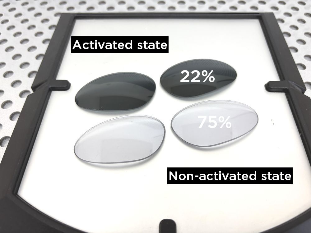 The lens does not simply switch between two fixed states; instead, it smoothly adjusts its light transmission between 22% and 75%, depending on the surrounding light conditions.