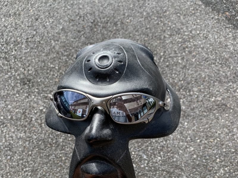 At the time color in Clear base lens with silver mirror, it looks similar to Oakley's Titanium Clear.